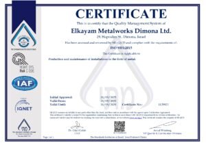 אלקיים מתכות דימונה מחויבת לעמוד בסטנדרטים הגבוהים ביותר של איכות ושביעות רצון הלקוחות בכל שלב מתהליך הרכש והבנייה. פעילותנו נתמכת על ידי מערכת מקיפה לניהול איכות ותעודות הסמכה בינלאומיות, ובהן: